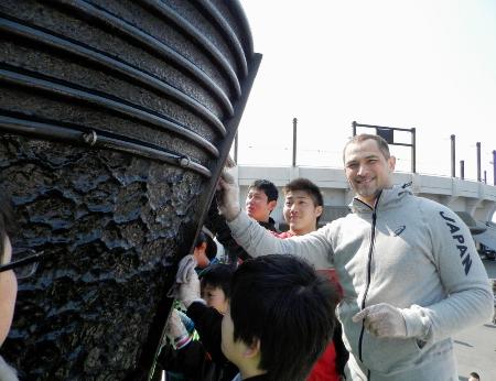 【スポーツ】「リレーコラム」復興五輪へ願い込め ハンマー投げ室伏氏、石巻で聖火台磨き