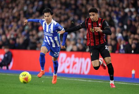 三笘、フル出場で100試合 サッカーのプレミアリーグ