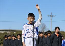 3月14日(土)の開会式では、ともぞうサッカークラブの黒﨑徠斗選手が「共に汗を流した仲間と心を一つにし、試合終了のホイッスルが鳴るまで全力でゴールを目指すことを誓います」と全選手を代表して選手宣誓しました。